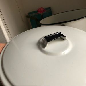 Nice vintage enamel stock pot with lid and handle.