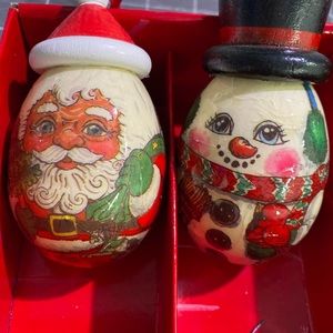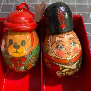 4 Vintage Decoupage Christmas Ornament Santa Reindeer Snowman Soldier