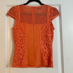 Bebe Orange Lace Illusion Neckline Shirt