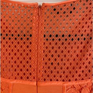 NWT Bebe Orange Lace Paneled Short Sleeve Top