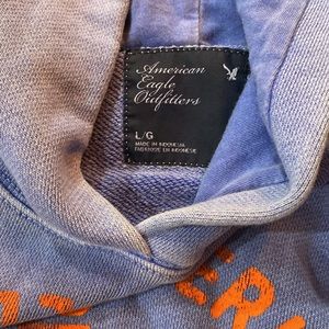 American Eagle size large sweatshirt. Acid wash blue with orange writing
