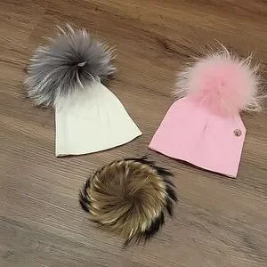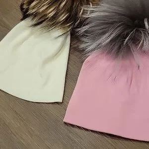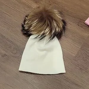 This is a beautiful set im selling together 3 real fox fur pom poms that clip on to both hats that are pink and cream. these hats are not from the same brand but the pom poms work on both. these hats are infant to 12/16 months at infant I folded it and then it as they grow. these are on like new condition and only selling as a set.