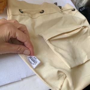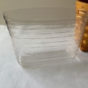 Longaberger Small Boardwalk with plastic liner and cream colored Longaberger liner. There are few small spots on the cream liner which are not really seen because it is inside the plastic liner. Price is adjusted for this. See pictures. Otherwise in good condition.