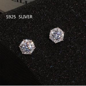 Unisex 2 CT 925 Sterling Silver Diamond Hexagon Pierced Stud Earrings