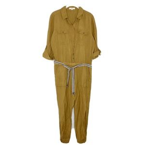 Ann Taylor LOFT Linen Blend Utility Mustard Yellow Roll Tab Sleeve Jumpsuit S.
