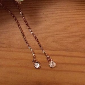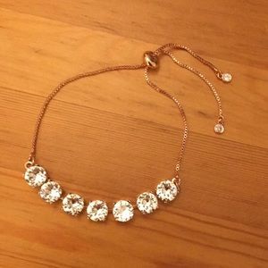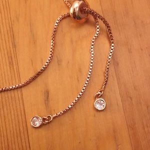 Rose gold color adjustable bracelet with cubic zirconia stoppers