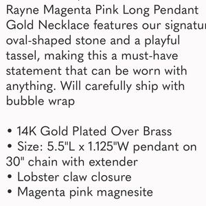 Excellent condition pink Kendra Scott necklace purchased at Nordstrom myself. Gold tassel. Can be worn short or long. Great color and statement piece to add to your jewelry wardrobe!