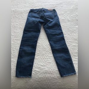 9” skinny jeans with frayed hem