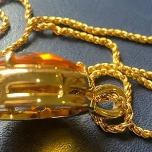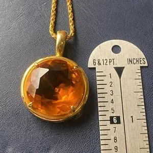 SIGNED JOAN RIVERS Topaz AMBER COLOR Glass Pendant Gold Tone Chunky Chain Necklace