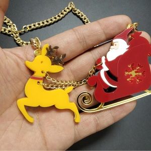 Santa and his bae reindeer laser cut acrylic necklace! Add some holiday cheer!