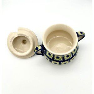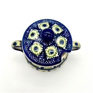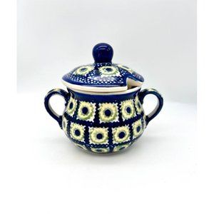 Polish Pottery Sugar Bowl Boleslawiec Floral Handmade Hand Painted Poland Folk A