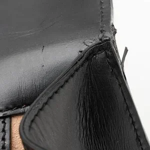 Condition: Well Loved - Visible scuffs throughout exterior. Light scuffs to exterior bottom corners. Heavy surface scratches and visible tarnishing to front closure hardware. Surface scratches to hardware. Visible creasing and scuffs throughout interior flap. Marks and light darkening throughout interior.