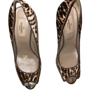 Authentic Valentino heels - used . Fair condition - worn once , horse hair like feel -4” heel . Grrr - transform any outfit in these - dress up or down .