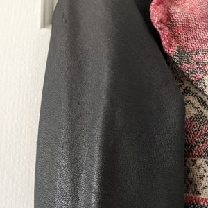 -Faux leather sleeves