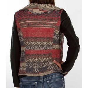 {Me Jane} Fabric and Faux Leather Cardigan Jacket