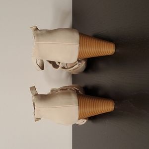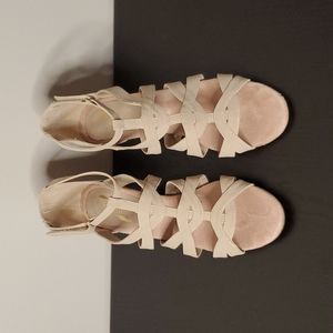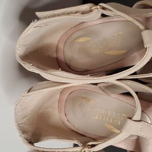 Super cute heels from Aerosoles. Worn twice to weddings but they weren't for me. Incredibly comfortable. Good used condition. Some marks from wear. Size 10. Velcro heel strap. Bottom of shoes show almost no wear at all.