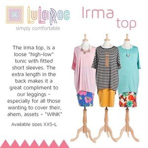 Even though I really like the top,it's too big.Have found in the Irma I wear L. The Randy I wear XL. Which is the only thing I don't like about LuLaRoe. Their sizes aren't consistent.Sorry for the trouble.Have a BLESSED weekend.💜🐢