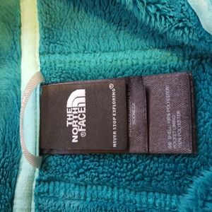 Beautiful North Face zip-up jacket, XS; gorgeous dark teal color; two zippered pockets in front, full-zip front; excellent condition, no flaws found; measurements in photos