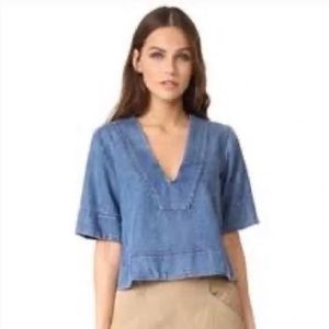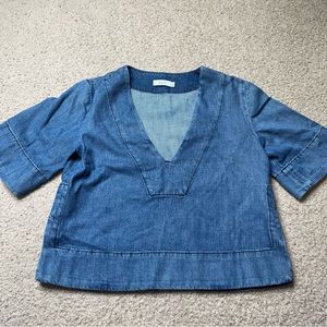 A.L.C. Cropped Chambray Deep V Neck Top Size 0