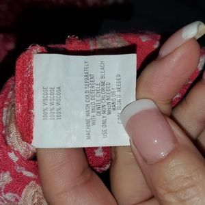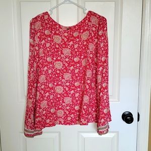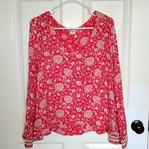 Like new red with beige floral pattern and bell sleeves O'neill peasant top. Excellent condition with no stains or tears. Size L.