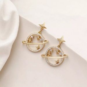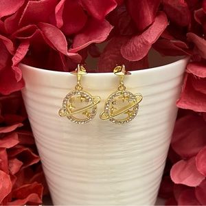 Crystal Planet Saturn and Gold Stars Dangle Earrings