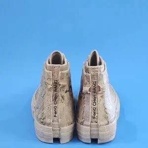 Limited-edition high top sneaker designed by Feng Chen Wang; Feng Chen Wang branding.
