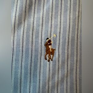 Ralph Lauren button down, long sleeve, Blue and white striped. Classic fit, smoke free home