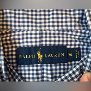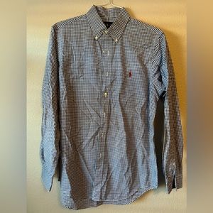 Ralph Lauren long sleeve button up polo, blue and white checkered. Medium