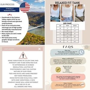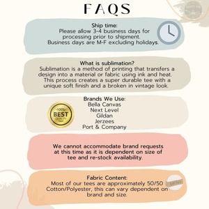 See included infographics for FAQ, SIZE CHART, and more info ABOUT US!