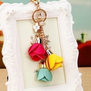 Multicolor Triple Rose Charm with Beads Keychain