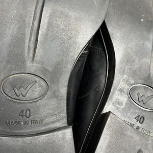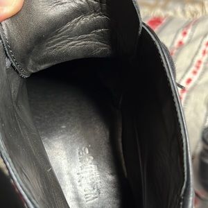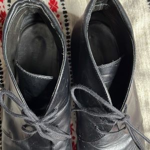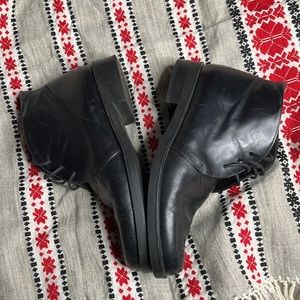 Walking co. Made in Italy glove lined Italian leather boot tie ankle black inside and out engineered for walking city streets. Built in arch support rubber sole wood stacked and leather heel waterproof treated