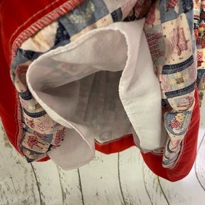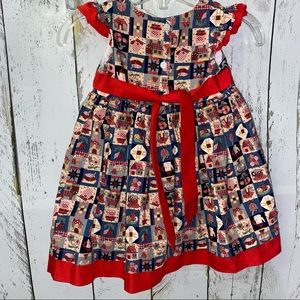 Vintage Girls Dress 24 Mo Red Multicolor Quilt Pattern Country Primitive Design.