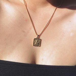 Kewpie pendant necklace, baby angle necklace, Cupid necklace, square pendant