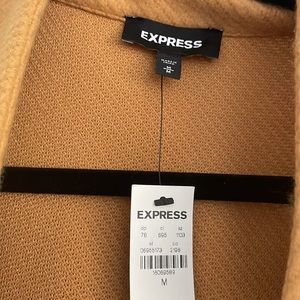 Ladies long tan color jacket looks great with jeans or dress pants