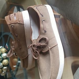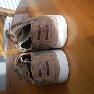 LIKE NEW! Men's TOMS canvas Boat Shoes. In excellent condition. Only worn once and are very clean with no stains or signs of wear. The color is a tanish brown.