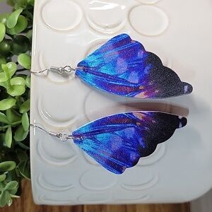 Beautifully rich colors beneath a domed rectangle dangle with hypoallergenic wires.