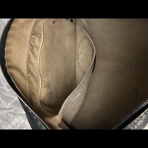 This bag is in excellent condition…except a couple of pen stains inside the zipper pouch on the inside. There are no tears, no scuffs and no wear. The previous owner was a smoker but the lingering smell is almost gone as I have been carrying the bag around with dryer sheets inside :). The handles are 11” long and attach an inch down from the top. I am pricing this wonderful bag to sell. I need Christmas money. This bag comes with an authenticity plate attached to the inside and authenticity papers which I will send to you. The outside is 100% pure pebbled leather and the inside is 100% suede.