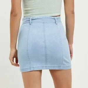 PacSun Belted Panel Light Wash Denim Mini Skirt