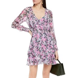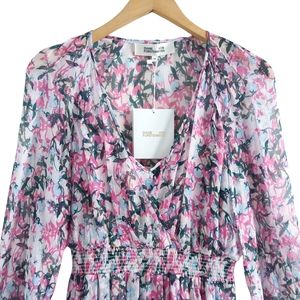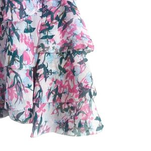 DIANE VON FURSTENBERG Kelby Floral Silk Mini Tiered Ruffle Pink Dress Size XS