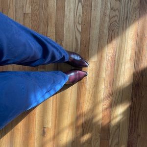 In 100% perfect condition. I wore once. It fits like a lovely glove, hugging in all the right places. am 130lbs 5’4” and usually a size S or 4. This jumpsuit has a silky feel with a faint floral pattern. This will become a piece you’ll keep for years.
