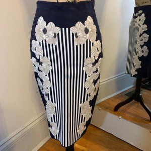 Flowers border bold stripes on this formfitting DVF skirt, and a coordinating solid creates a striking outline. Stretch waist. Unlined.Slim stretch fit, allover printed, pull on closure, 28” Waist, 23.5” length, unlined.