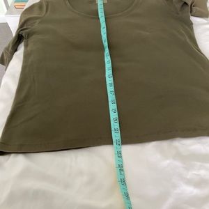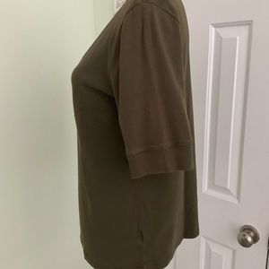 Jones New York dark green t-shirt pullover with deep scoop neckline and 1/2 sleeve.
