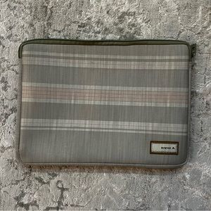 Chic pale blush pink and gray-beige (greige) plaid laptop 14-inch sleeve case from Burton. The case does show some wear with use (see photos), in particular there is a little hole in the bottom of the case, but otherwise in great condition with a lot of life left in it!