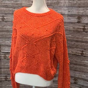 Lush Women's Orange PomPom Crewneck Pullover Sweater NWOT