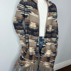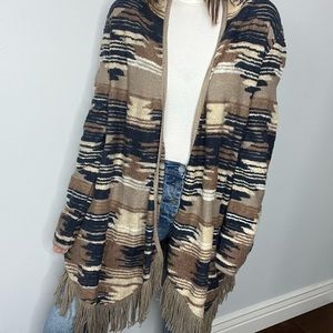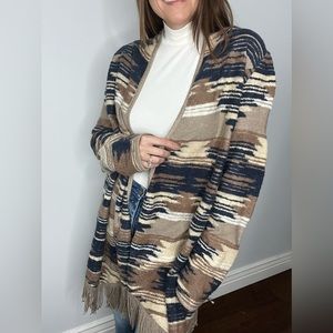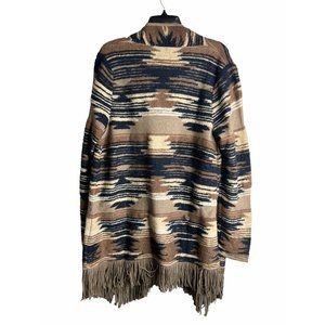 Lucky Brand Aztec Fringe Open Front Cardigan Large NWT