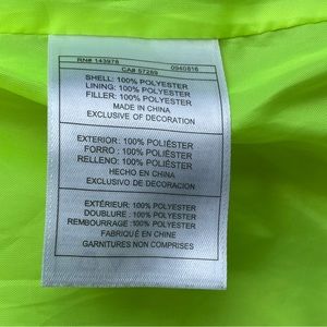 100% Polyester Shell/Lining/Filler, 6 Snap-button full-length closure, slit front pockets.