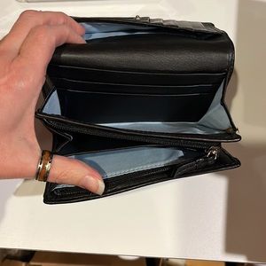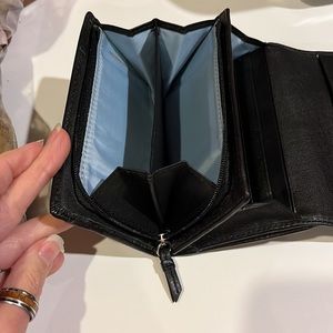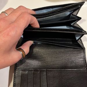 Coach Clutch Style Black Soft Leather Wallet w/Blue Fabric Inside ALMOST NEW