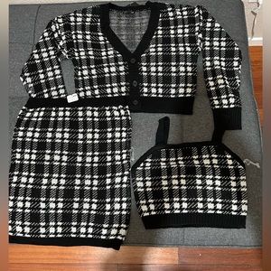 Fashion Nova, 3 piece set, skirt, sweater, crop top, black & white,.