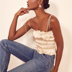 NWT Reformation Viviana Silk Top Ivory Sz S