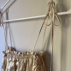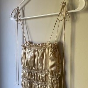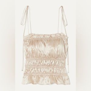 NWT Reformation Viviana Silk Top Ivory Sz S. Hyper stretchy. 100% silk. Adjustable barely there straps. New condition; I see no flaws to note. Measurements: according to Reformation’s website, size S best suits a 34 bust, 28 waist, 38 hip (stretch allows room). 13” length (not including adjustable straps). I am size XXS-XS and this style fits me well.